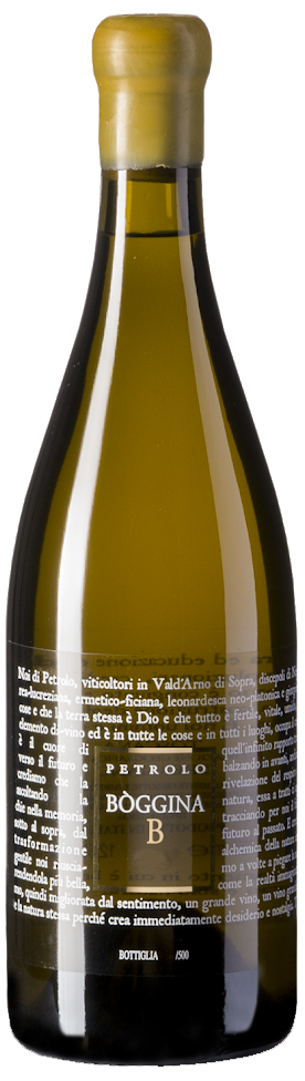 Only 7,000 bottles made. Bòggina B brings Burgundy to Tuscany. The wine is made of 100% Trebbiano from vines planted in the 1970s and recently replanted below the Bòggina vineyard using the same original clones. Defying the traditional view of Trebbiano as a simple variety not suited to making high-quality, interesting wines, Trebbiano from Valdarno was renowned from the 1300s on for its quality; it was sent to the popes in Rome and the courts of Florence.